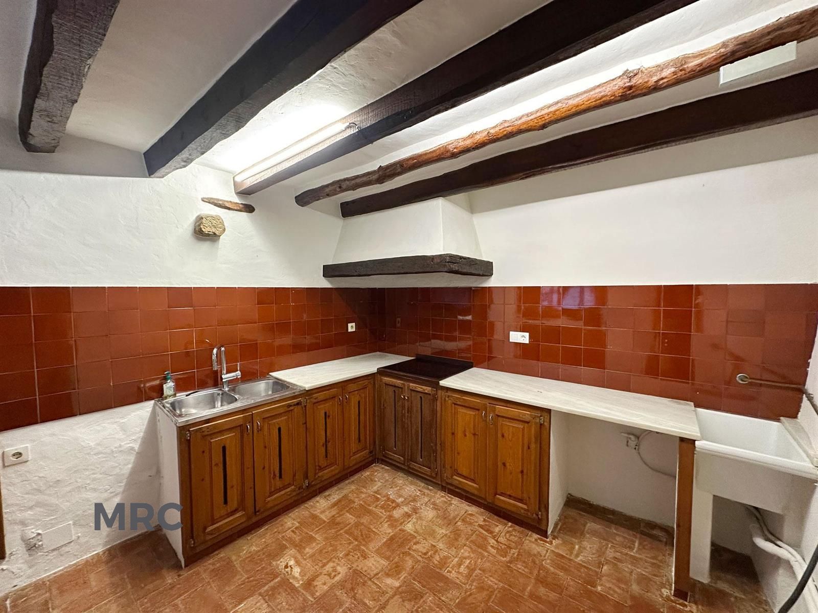 Planta baixa: rebedor, sala d’estar, menjador amb llar de foc, cuina office amb encant rústic, bany i una habitació individual.