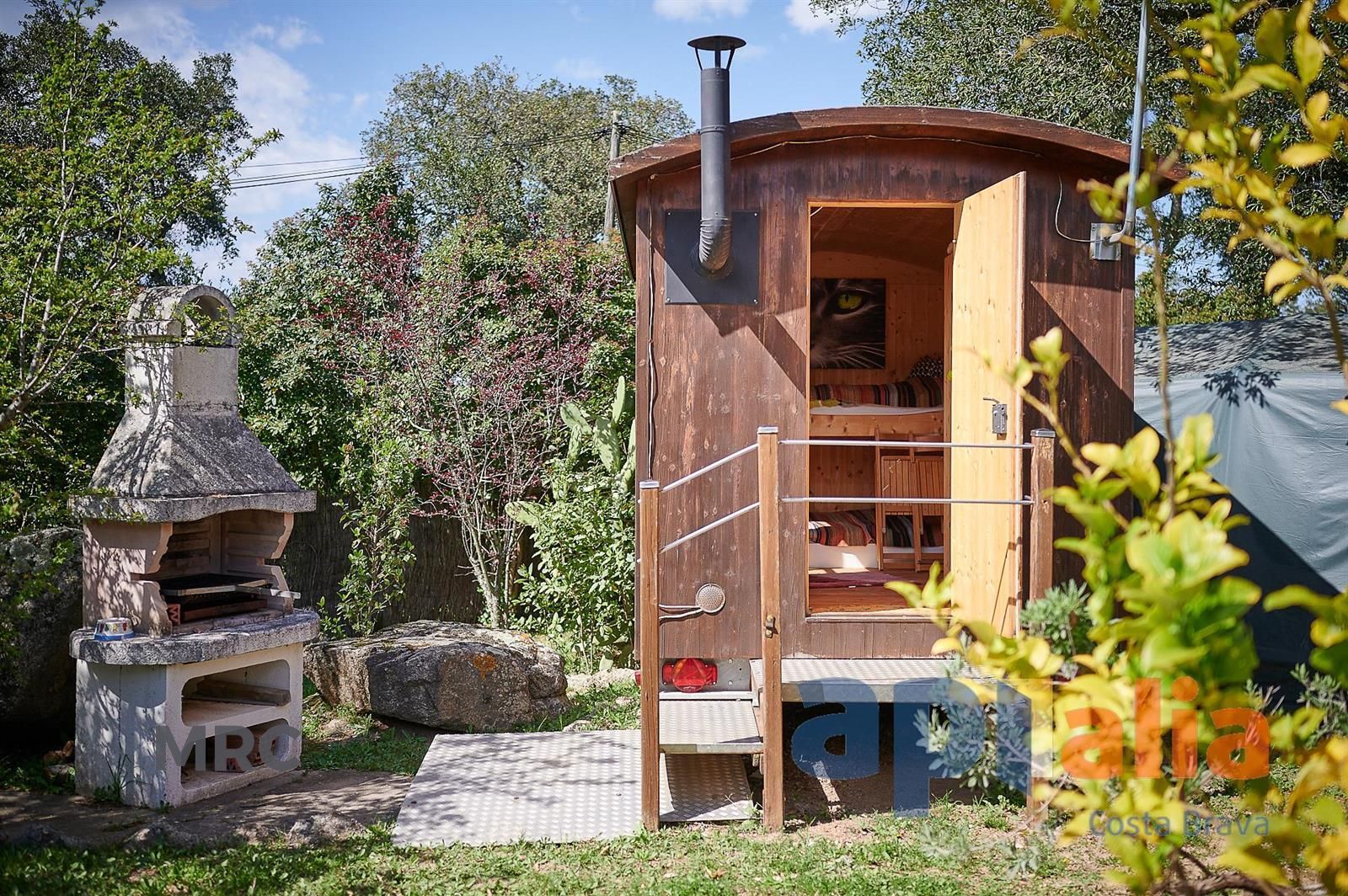 Además, en la parcela se encuentra un bungalow de madera con capacidad para 2 personas, perfecto como espacio extra para niños o visitas. También cuenta con una zona cubierta para aparcamiento y calefacción a gas para mayor confort.